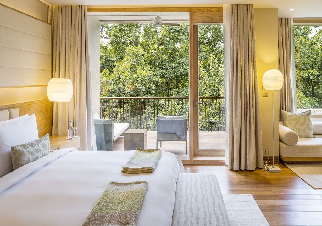 Die Räume wurden von einem spanischen Architekten entworfen und designt. Das gesamte Hotel ist sehr hell, geradlinig, großzügig und modern gestaltet. Einige Suiten sind mit einem eigenen Behandlungszimmer versehen. Die Zimmer haben Platz und garantieren einen privaten Rückzugsbereich in einer komfortablen und warmen Wohlfühlatmosphäre umgeben von der Natur.