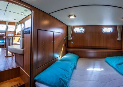 - Der Typ P.1165FB hat drei Doppelkabinen, zwei im Heck und eine im Bug. Eine der Heckkabinen ist mit einem Doppelstockbett versehen. Dieses Boot hat zwei Nasszellen und zwei Toiletten, jeweils eine im Bug und eine im Heck.